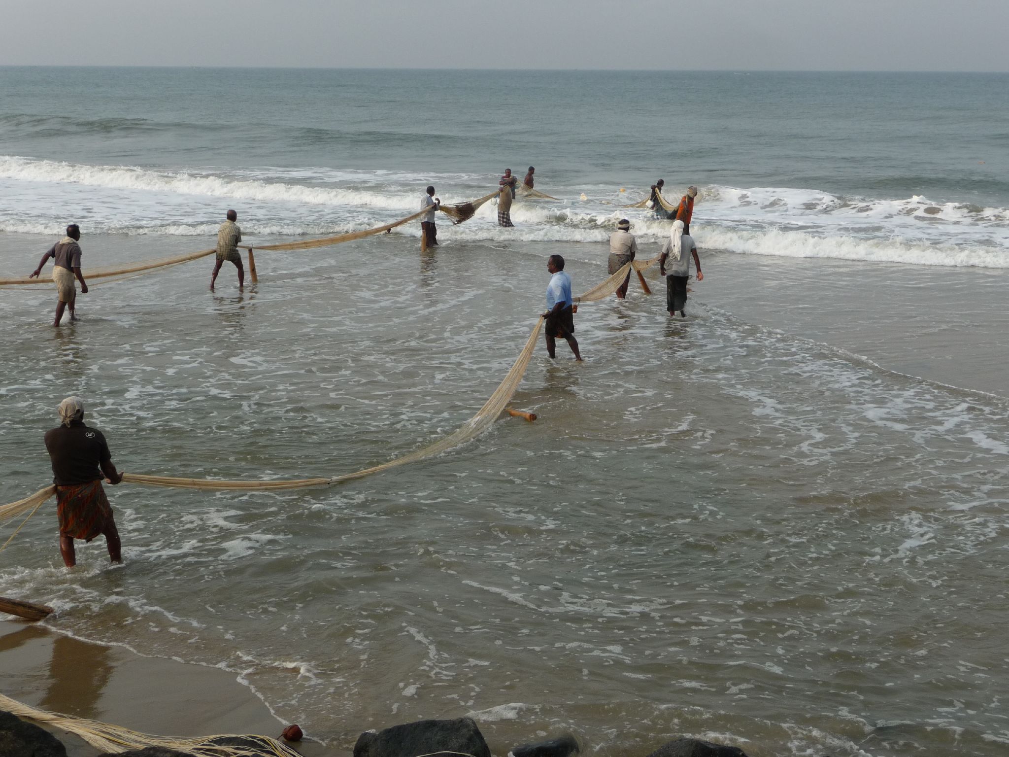 Fishermen on the black beach near Varkala