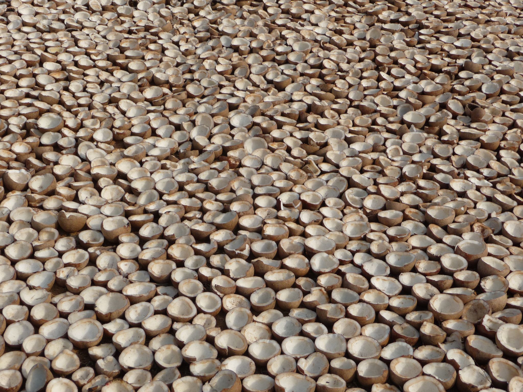 Coconut shells drying in the sun