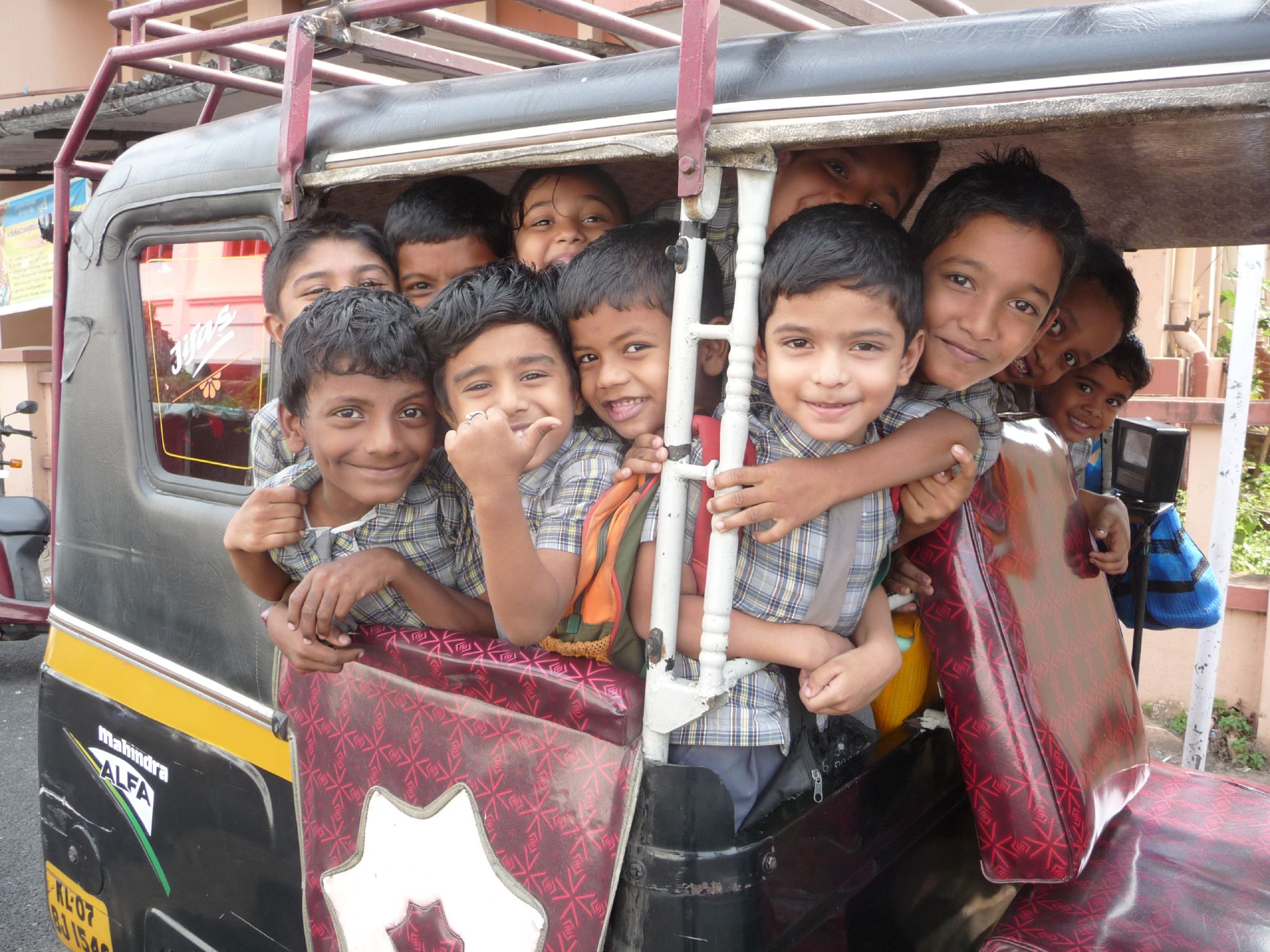 Kids in Kochi, officially there is space for two or three in a rickshaw