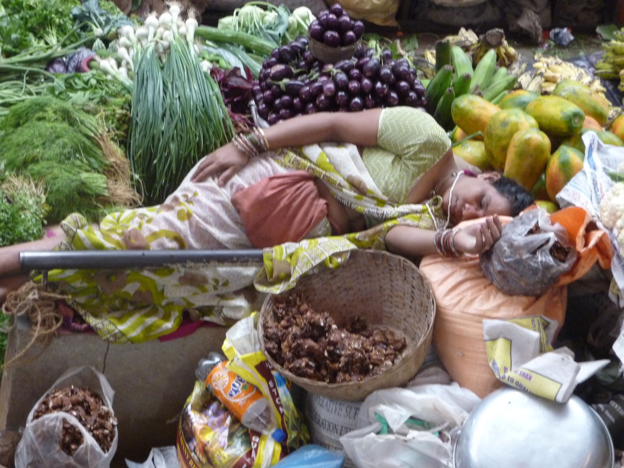 Market vendor in Panaji during her nap