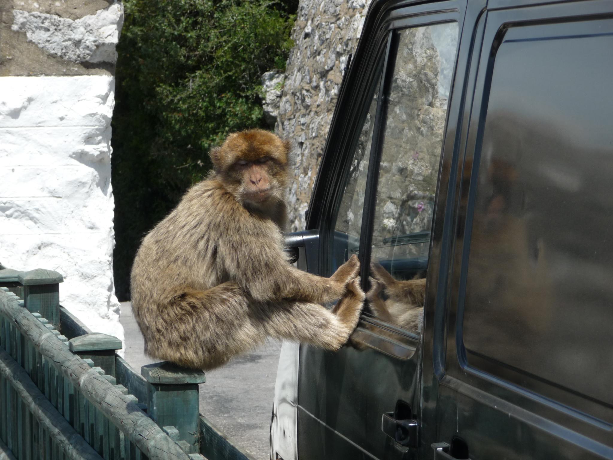 One of the many monkeys on the rock