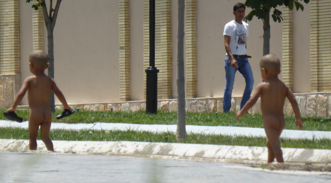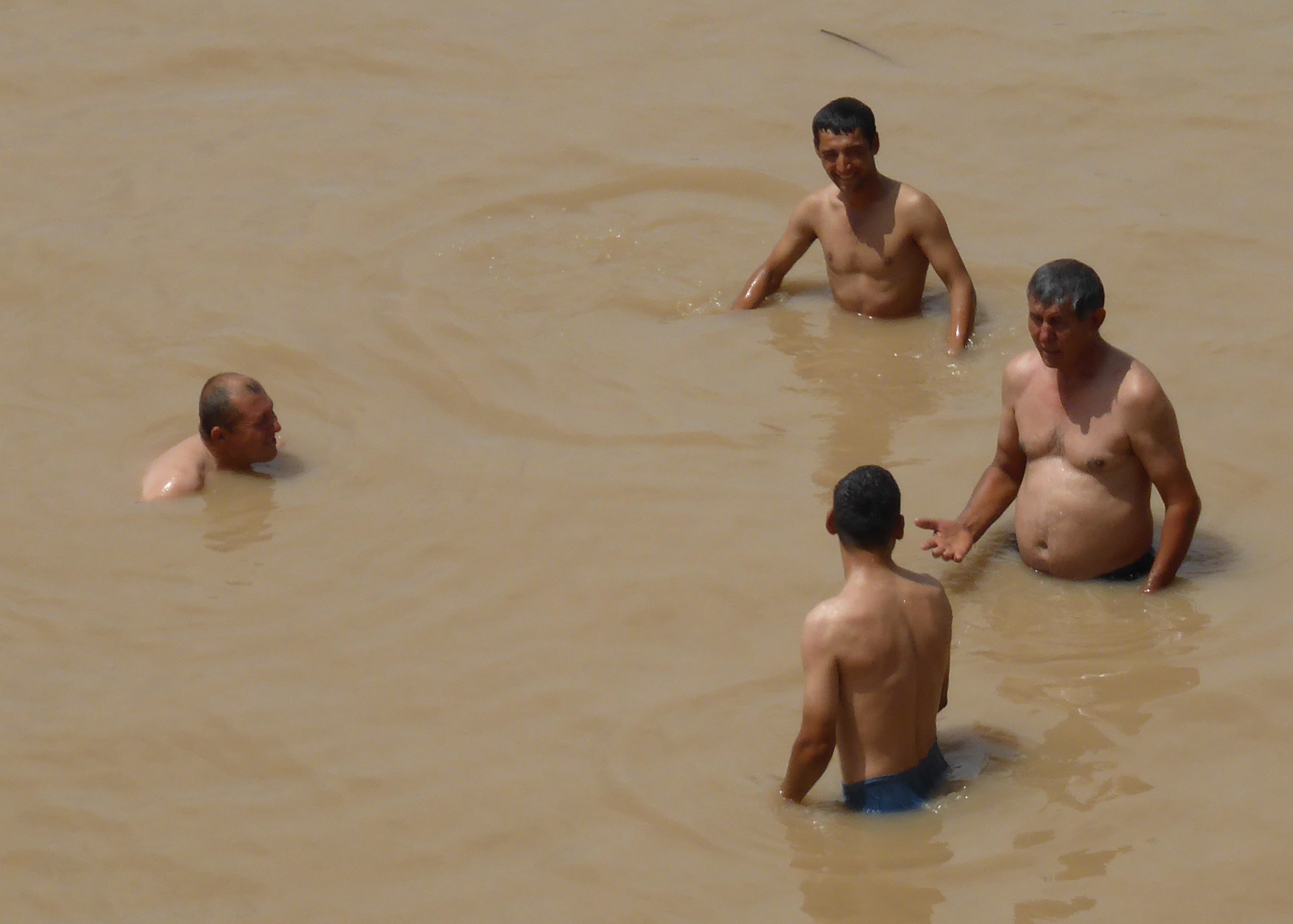 Bathing in the not so clean river in Uzbekistan