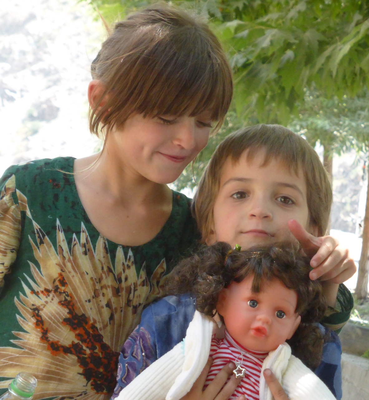 Girls at a truck stop in the middle of nowhere in central Tajikistan