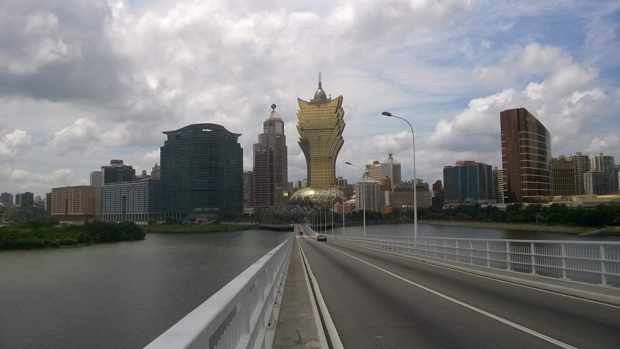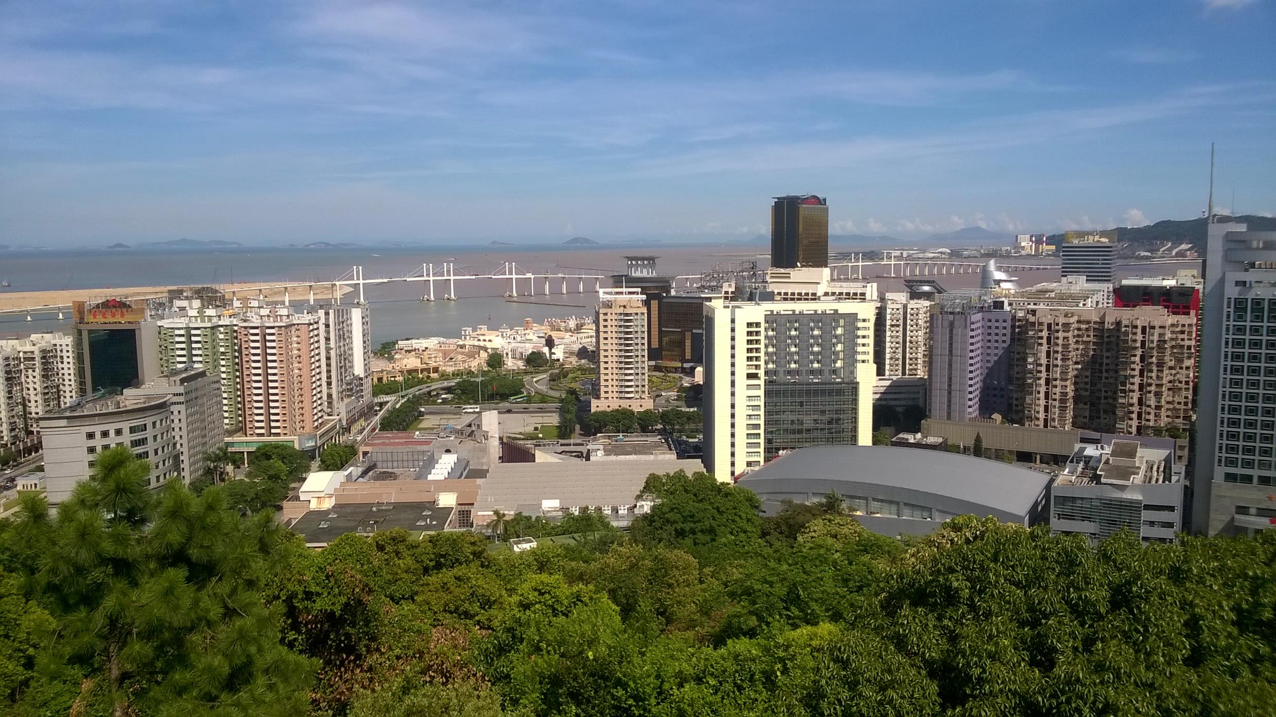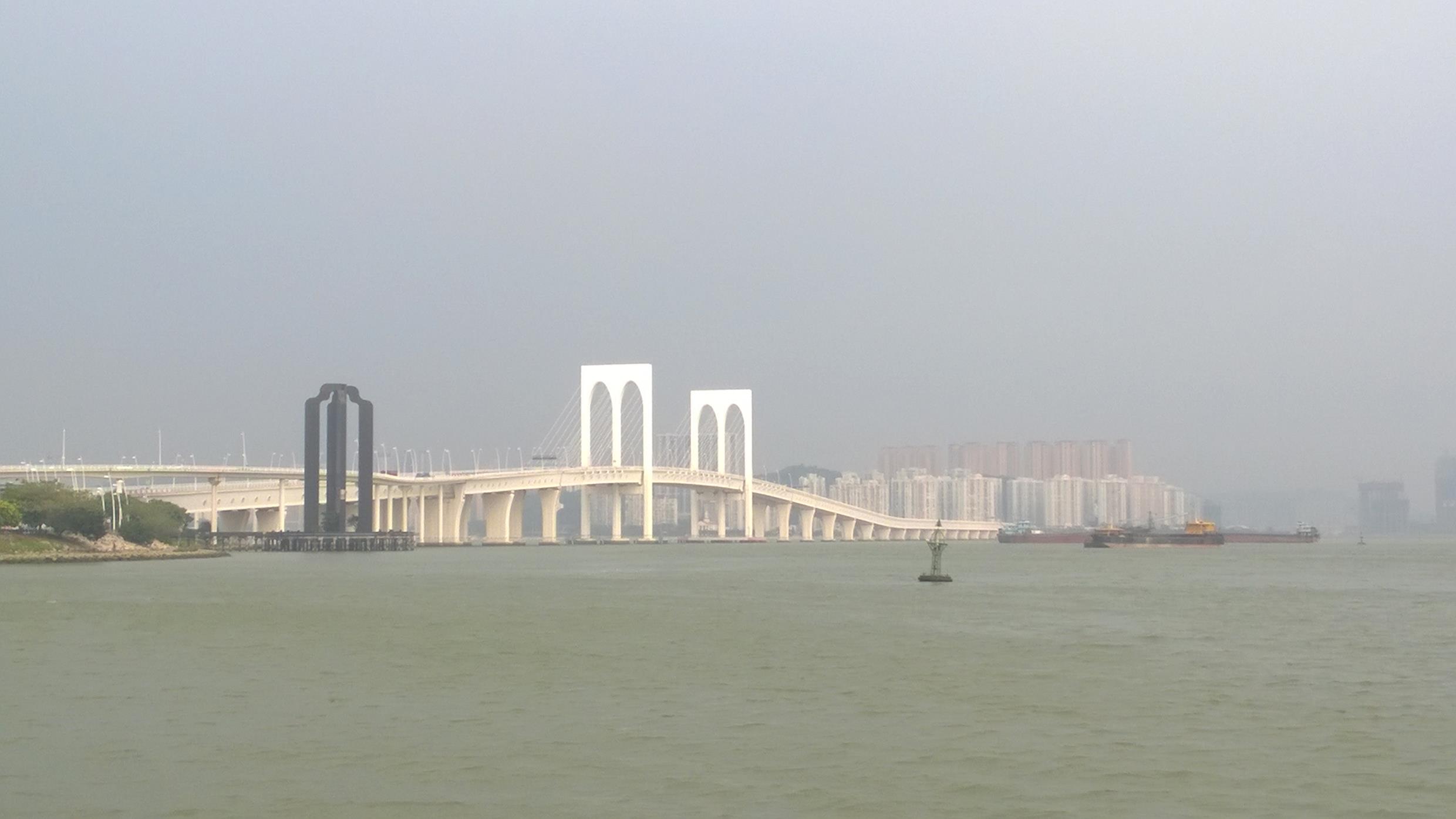 On the middle bridge looking back to Macau