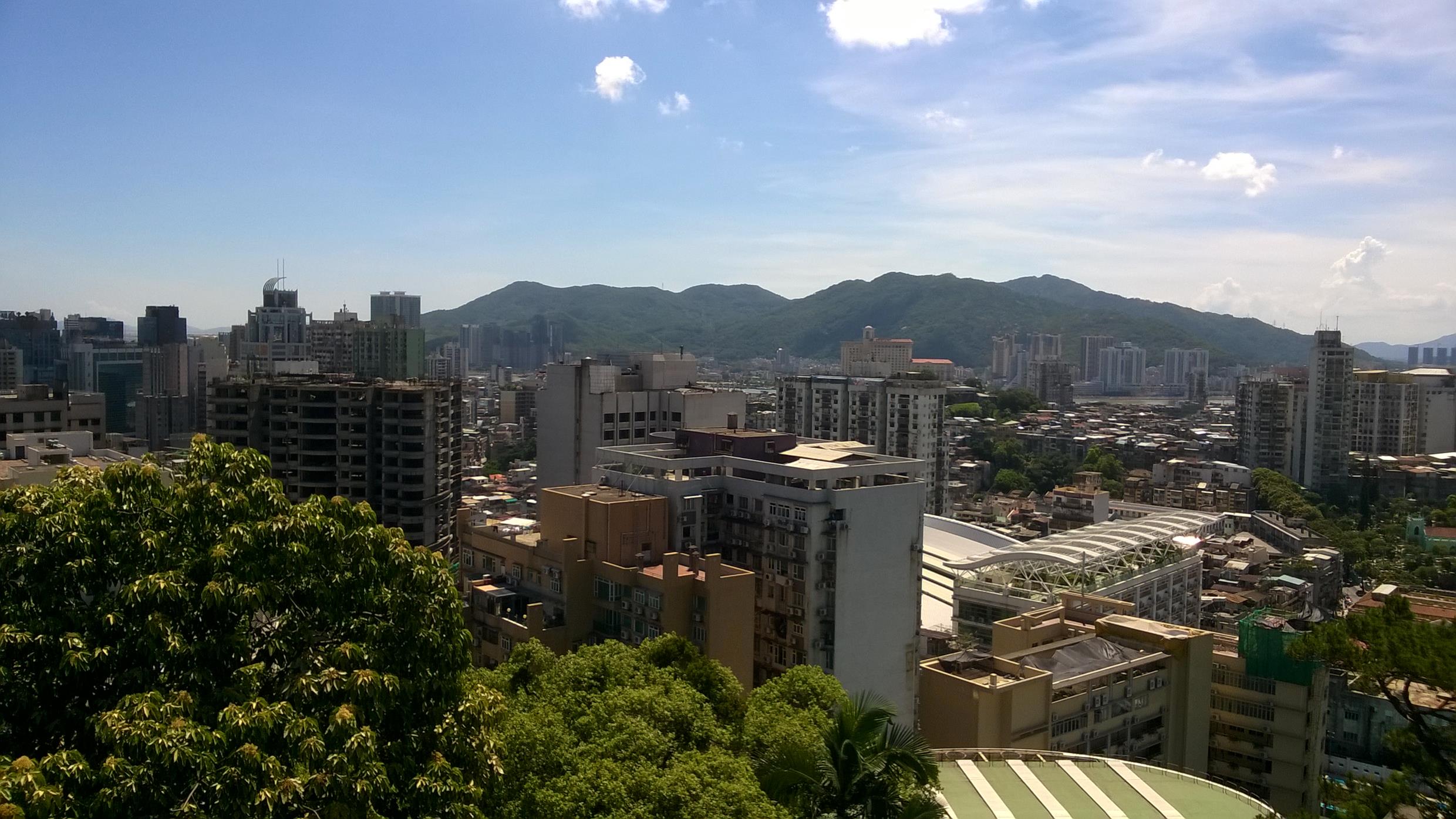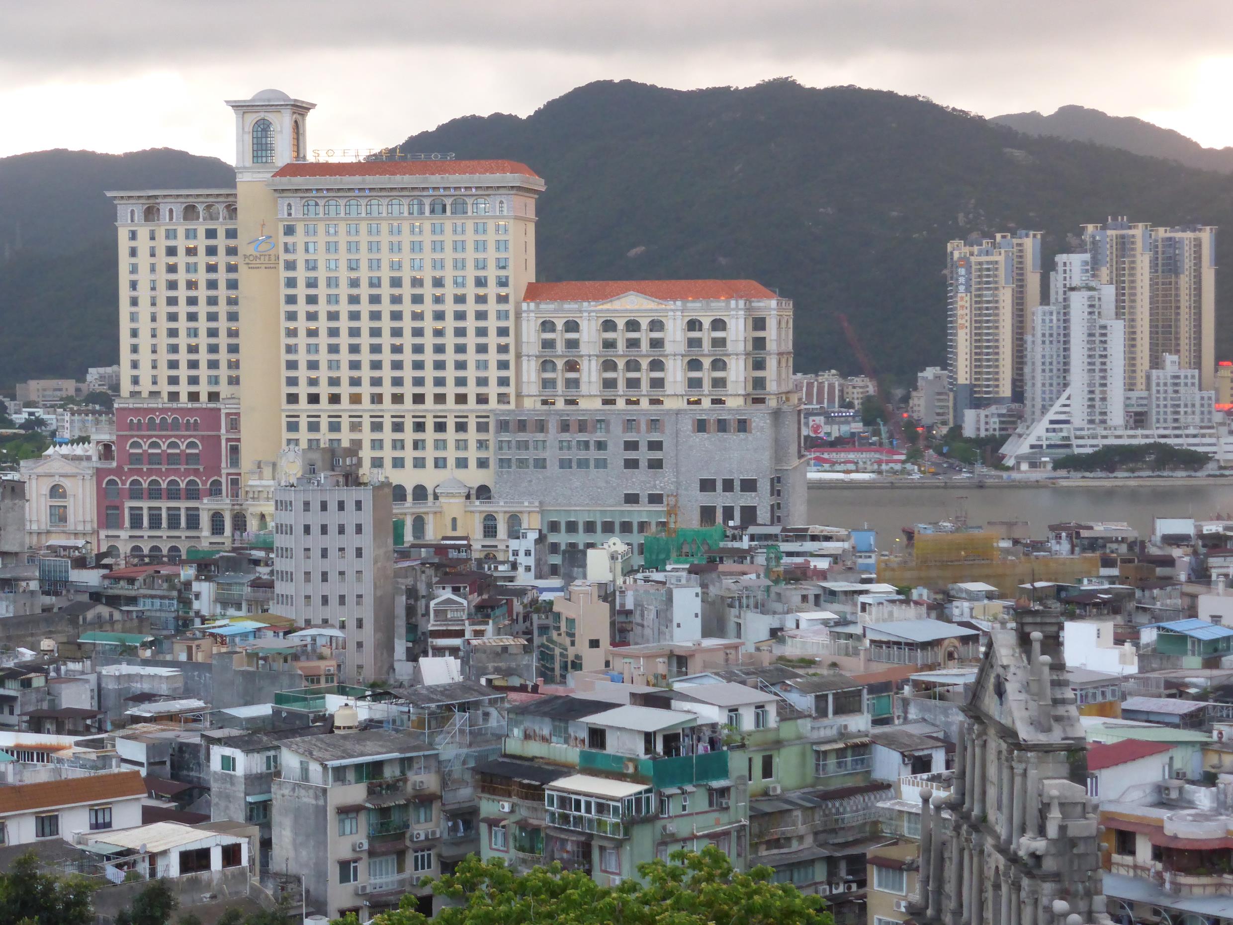 St. Pauls ruins and the Ponte 16 casino with Chinese hills in the background