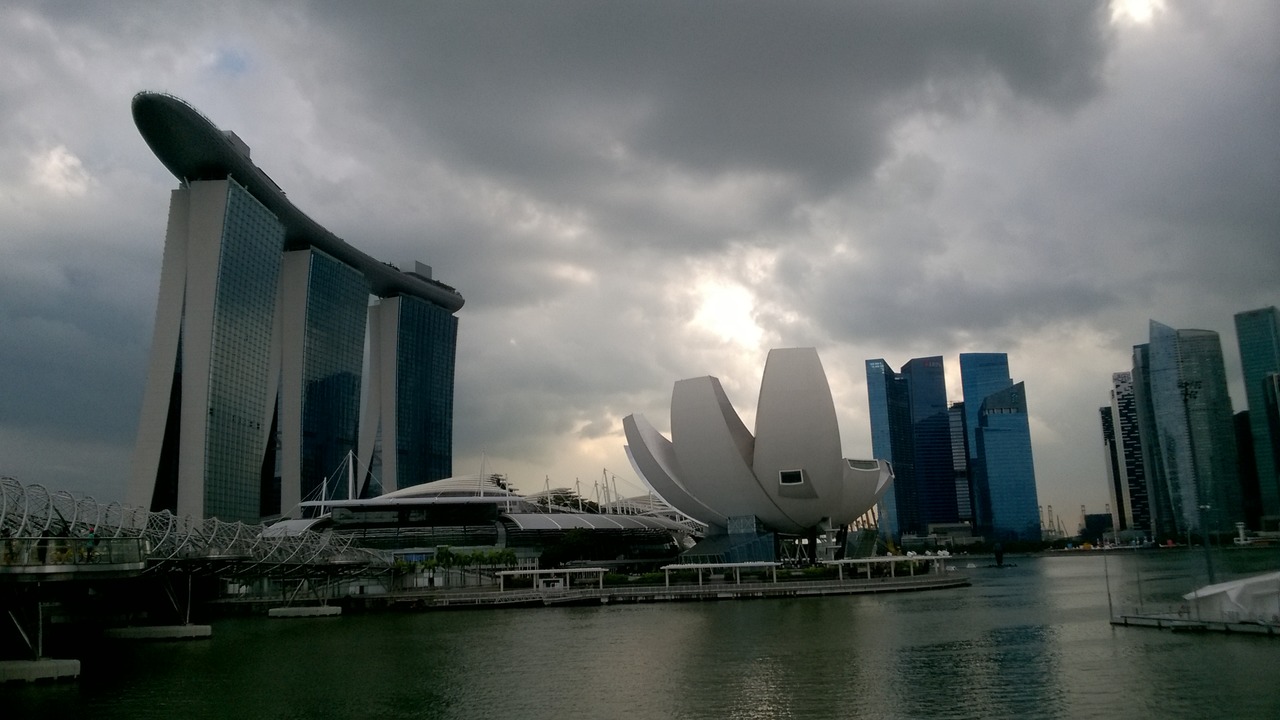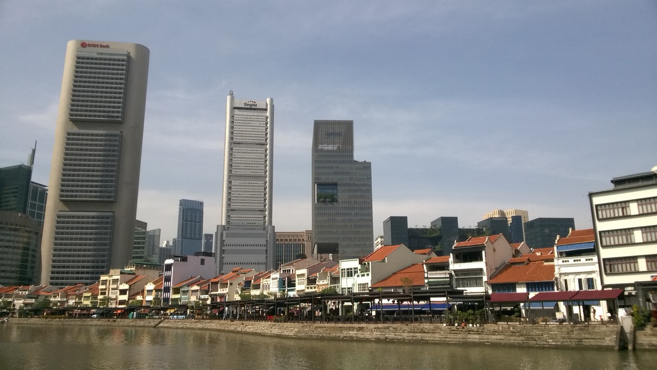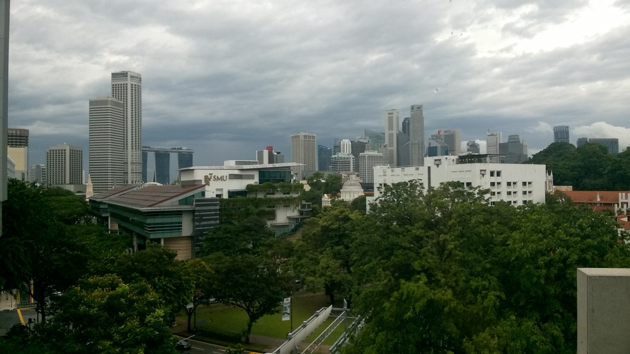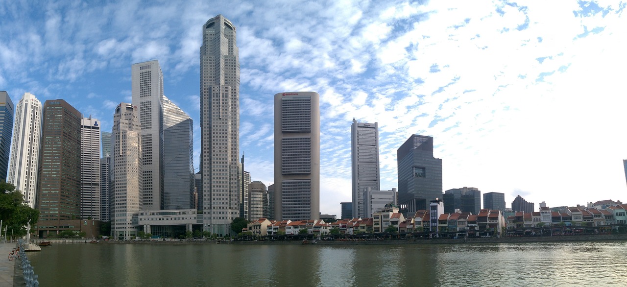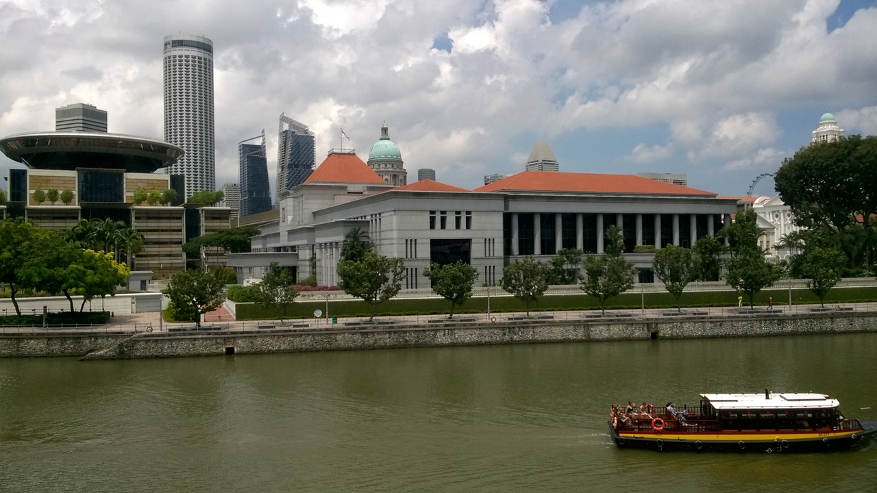 View over Singapore river, Parliament building and Supreme court