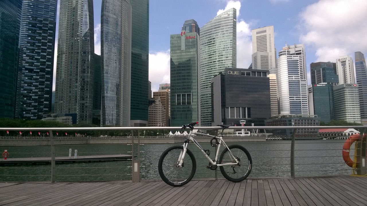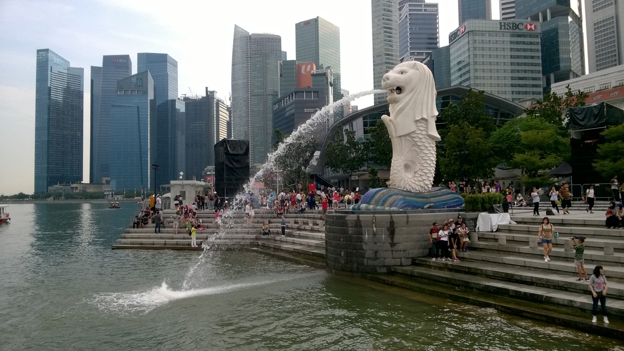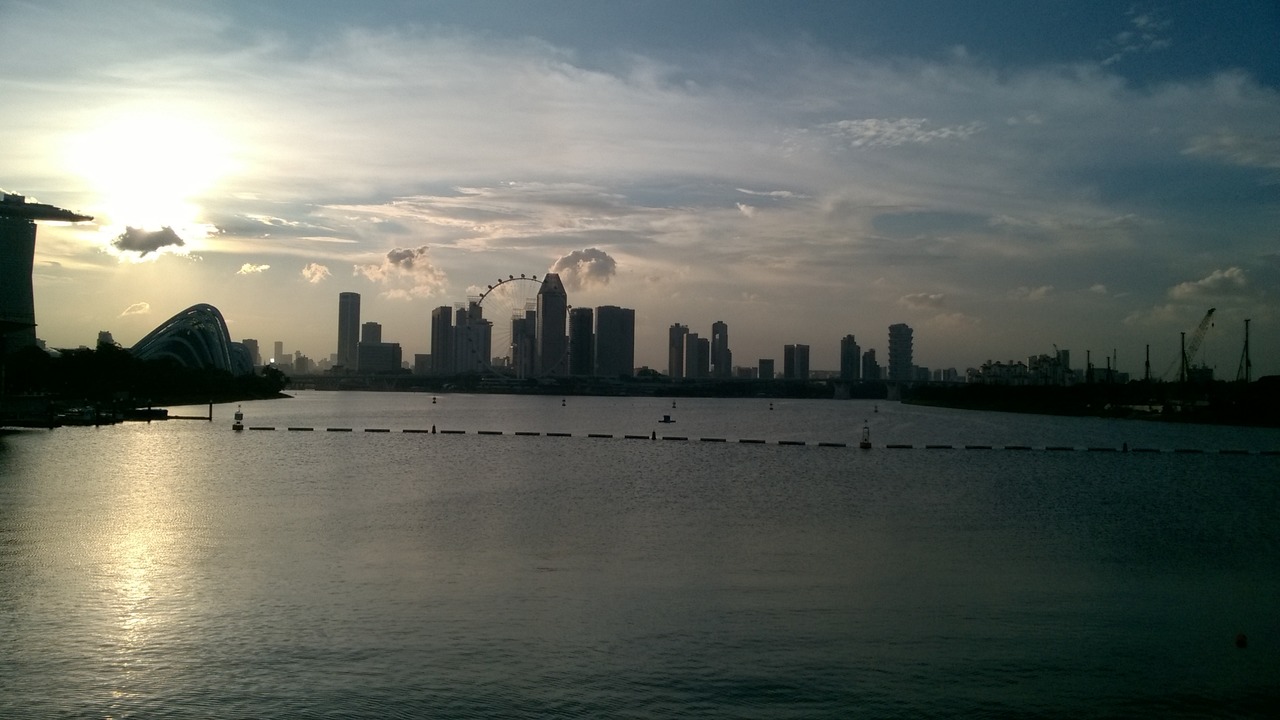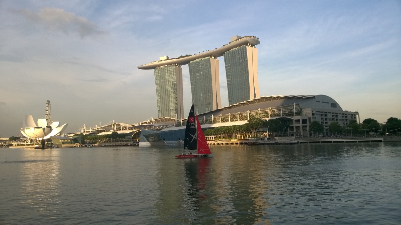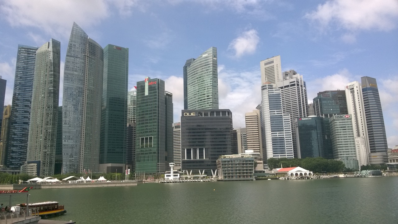 View over Singapore river, Parliament building and Supreme court