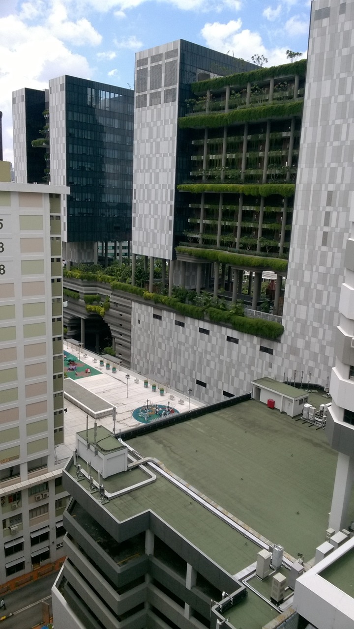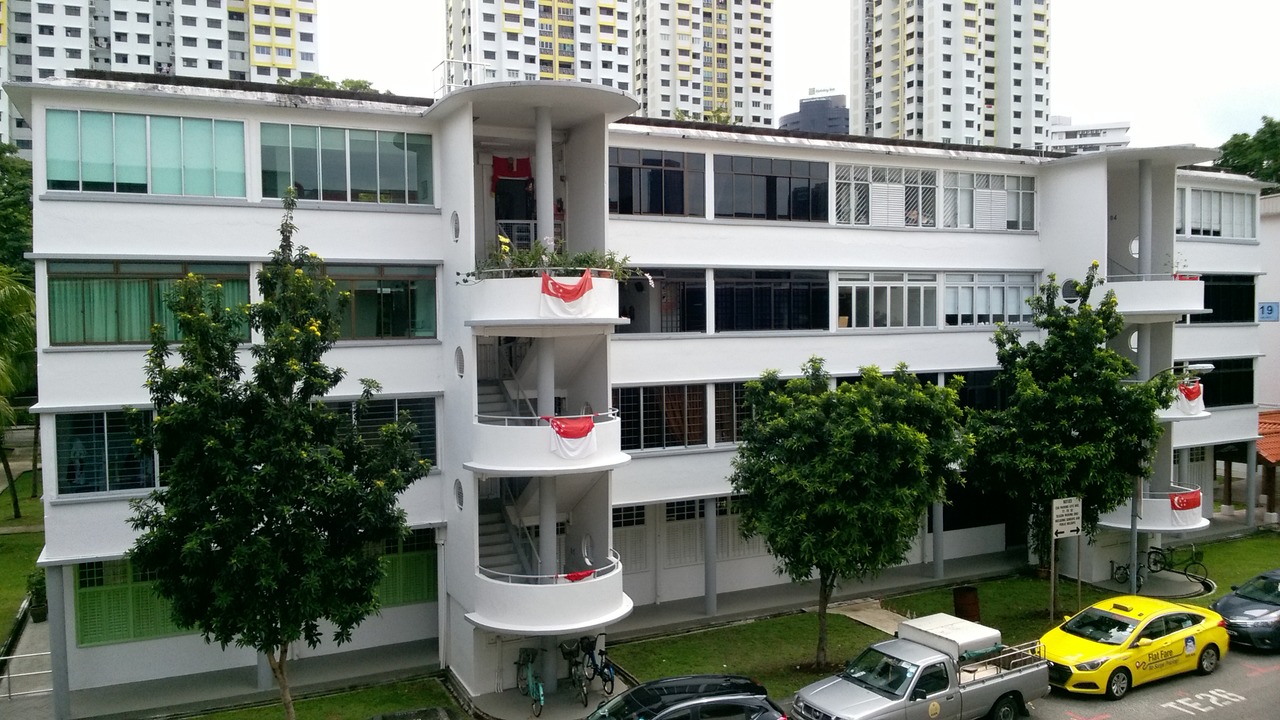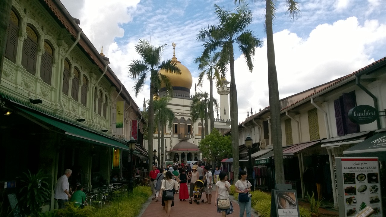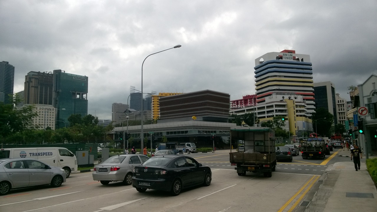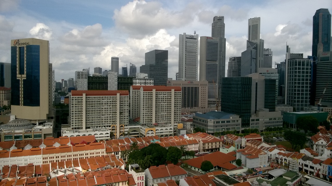 China town throughfare with the Pinnacle Duxton building in the distance