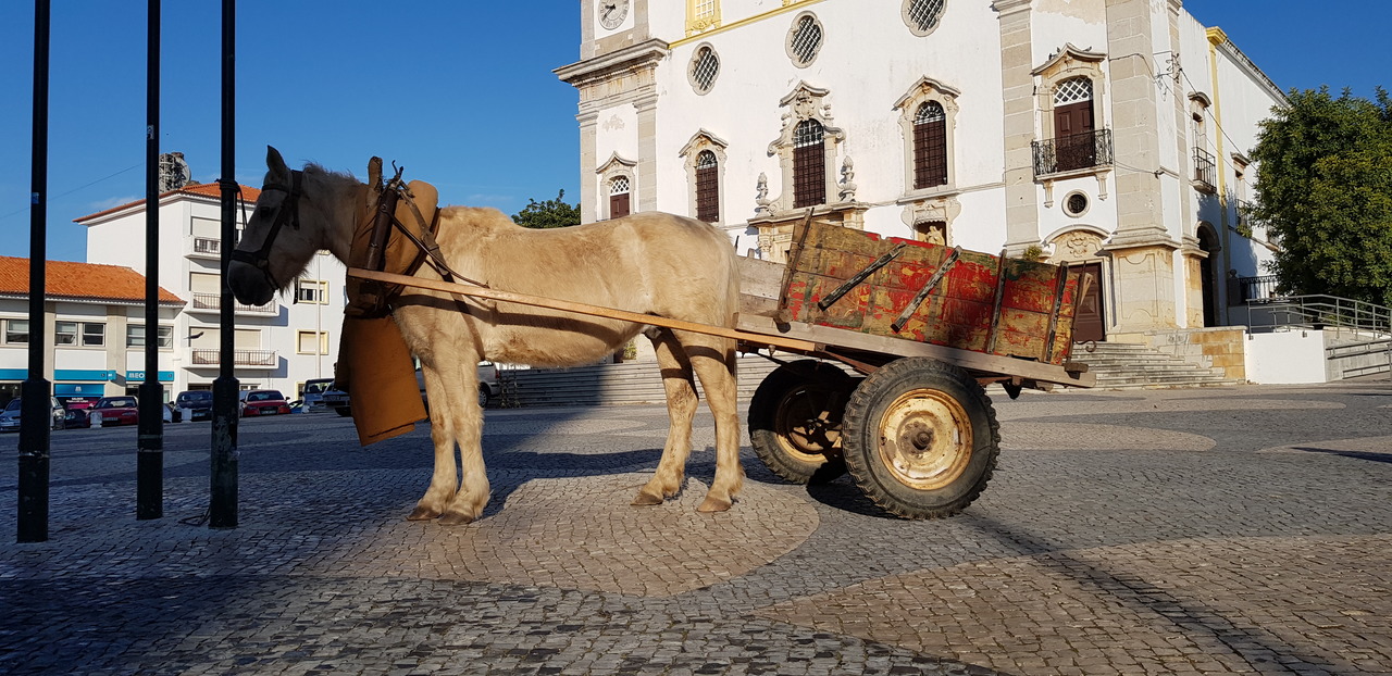 Horse cart and church in Faro